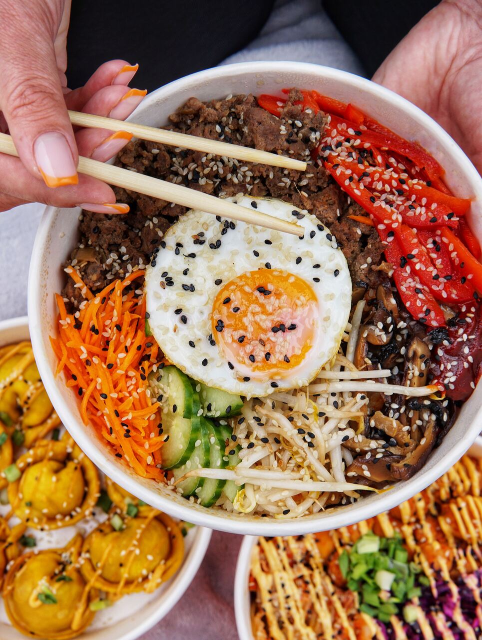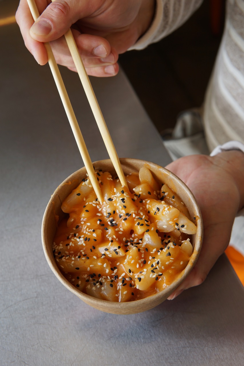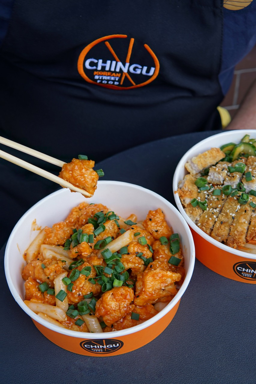 W galerii Chingu znajdziesz potrawy, które stały się symbolem koreańskiej kuchni. To między innymi Bibimbap, czyli ryż z warzywami, mięsem i pikantnym sosem gochujang, Korean Fried Chicken o idealnie chrupiącej skórce, aromatyczne Tteokbokki z ryżowych klusek w pikantnym sosie, a także kultowe Kimchi Pancakes.